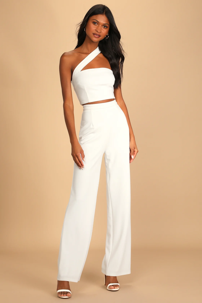 Experiment with silhouettes: All-white apparel gives the ideal canvas for experimenting with various silhouettes. Choose styles that fit your body type and make you feel confident, whether a flowing dress, a modified jumpsuit, or a sophisticated two-piece.